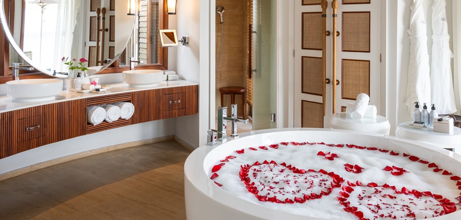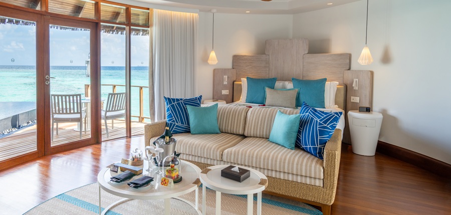 | ルームタイプ | 《全室プライベート・プランジプール付》 水上ヴィラ (100㎡)37室 ビーチヴィラ (350㎡)9室 ファミリー水上ヴィラ(100㎡)20室 ファミリー・ビーチヴィラ(375㎡)11室 2階建ビーチヴィラ(410㎡)8室 2ベッドルーム・ビーチヴィラ(508㎡)1室 プレジデンシャル・ビーチヴィラ(700㎡)1室 |