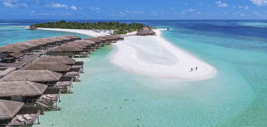 アリ環礁南部の美しい海に囲まれた、『コンスタンス・ムーフシ』はエレガンスあふれるネイチャーリゾートです。歩いて約20分ほどの小さな島には、モルディブ随一とも言われるホワイトサンドのビーチや、干潮時に現れる幻想的なサンドバンクが広がります。洗練とナチュラルが心地よく調和し、肩の力を抜いて過ごせるのがムーフシの魅力です。