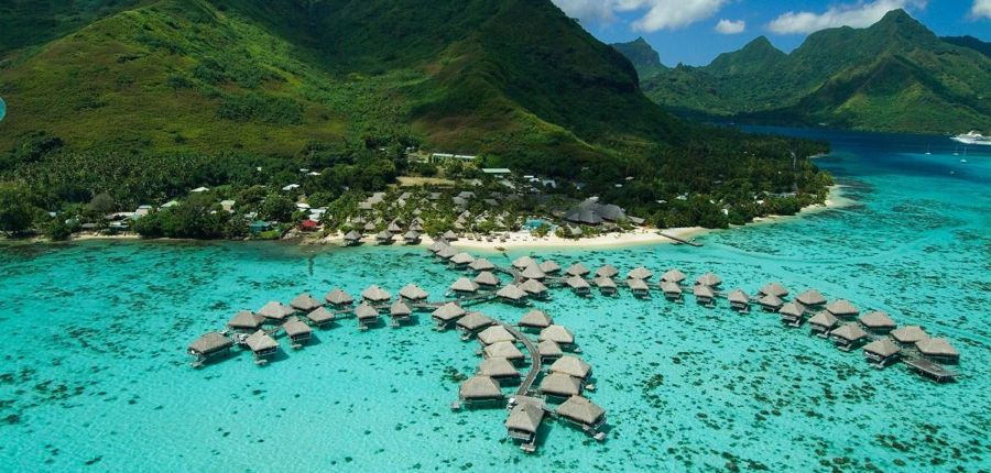 ハート形をしたモーレア島の2つの湾、オプノフ湾とクック湾の透明なラグーン囲まれ、美しい山並みを背景に佇むヒルトン・モーレア。白砂のビーチやトルコブルーのラグーンを正面に、エキゾチックな南国の花々が咲き乱れる庭園に囲まれ、ポリネシア独特の自然環境を取り入れた5つ星ホテルです。全室バンガロースタイルの客室は、コンテンポラリーなポリネシア風のデザインが目を惹く雰囲気。ラグーンに浮かぶ水上バンガローの周辺の水深は1~2メートル。テラスからそのまま遠浅のブルーラグーンへ降り、シュノーケリングに最高のスポットとして地元モーレアの人々に愛される、モーレアの水中世界をお楽しみいただけます。ゆったりとした広さを誇るバンガローは、プライバシーも守られた優雅な滞在が叶います。滞在を豊かなものにしてくれるレストランやスパも充実。ハネムーナーはもとより、ご家族連れ、シニアのお客様にも安心してご利用いただける、タヒチらしさの満喫できる施設充実の人気のホテルです。