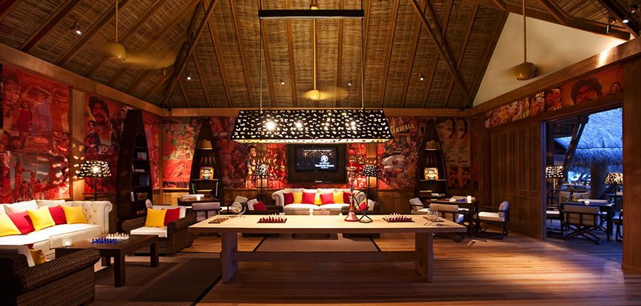 白砂のカーペットのメインレストラン。オープンエアの広々としたエリアの外には、水上にせり出したデッキエリアが続き眺めも抜群。日替わりのテーマビュッフェは、クリスピーピザからモルディブ料理まで多彩。豊富な 種類のワインセラーからソムリエのアドバイスを受けてオーダー頂く事も可能です(一部ワインは有料)