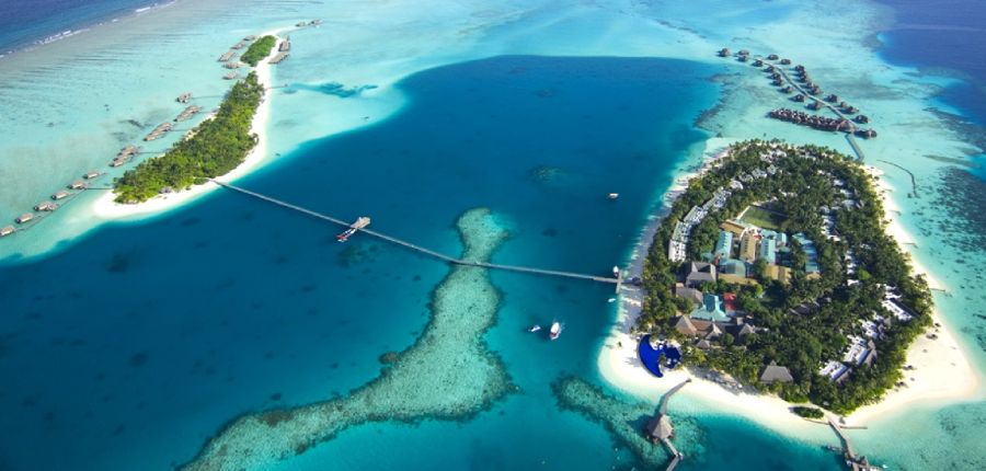 空港から水上飛行機で約30分。アリ環礁南部に位置するランガリフィノール・アイランドと沖合に浮かぶ ランガリ・アイランド、2つの島を500mの桟橋で結んだ美しいリゾート。敷地内にビーチヴィラ、水上 ヴィラ、スパ、12のレストラン、バーを持つ。「世界で最も美しいレストラン」に選ばれた「イター・ア ンダーシー・レストラン」ではエメラルドの海に抱かれた幻想的な空間で食事を楽しめます。ビーチから 100mの沖合の水上スパに併設された「マンドゥー・レストラン」、サンゴ礁の水面に浮かぶデッキでディ ナーを楽しめる「サンセットグリル&バー」などそれぞれに趣向を凝らしたレストランやバーは全部で10 軒。シーフード、バーベキュー、ヨーロッパ、アジアと様々な食事を楽しむことができます。「世界のベ ストウォーターヴィラ」や「世界のベストスイート」「モルディブのベストスパリゾート」をはじめ、 数々の国際的な受賞歴を誇る「コンラッド・モルディブ」。美しいモルディブの生態系に囲まれたリゾー トで、肩の力を抜いた贅沢な時間をお楽しみ下さい。