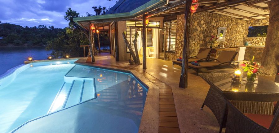フィジーの離島の中でも無垢な自然が残る島、バヌアレブ島にある「サバシ・アイランドリゾート」は、客室数わずか7室の高級ブティックリゾート。豊かな自然に溶け込む様に建つ1棟1棟造りの異なる客室は、フィジーの伝統を取り入れた開放感あふれる贅沢な空間。客室数の少ない小規模なリゾートならではのスタッフとの距離感、ゆったりとしたプライベートな時間を満喫いただけます。またオールインクルーシブ・ダイニングのお楽しみもサバシならでは!大自然の中、キャンドルを灯した洞窟でのディナーなど非日常な美しい景観の中でのお食事も。他のリゾートとはひと味違う贅沢なお食事をお楽しみ頂けます。アクティビティもダイビングをはじめ、潮吹きホール、ソルトレイクでのカヤック、滝壺など、バヌアレブ島ならではの豊かな大自然を体験頂けるものが勢揃い。フィジーのここでしか出来ない特別な体験をお楽しみいただけます。