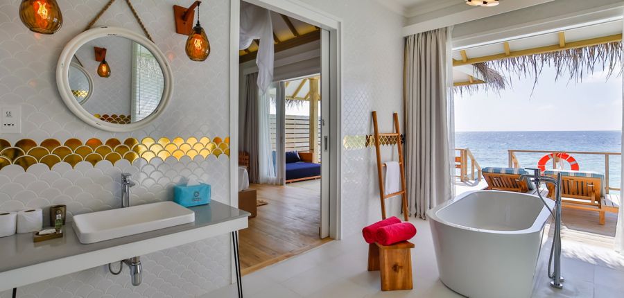| ルームタイプ | ビーチヴィラ with プール(93㎡)51室 ファミリービーチヴィラ with プール(97㎡)10室 グランドビーチヴィラ with プール(135㎡)5室 ビーチレジデンス with プール(194㎡)1室 2ベッドルーム ビーチレジデンス with プール(643㎡)1室 水上ヴィラ with プール(124㎡)41室 ドルフィン水上ヴィラ with プール(124㎡)14室 水上レジデンス with プール(175㎡)1室 2ベッドルーム水上レジデンス with プール(393㎡)1室 |