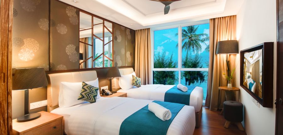マーレ国際空港からお車で約10分、フルマーレの海岸沿いに新しくできた4つ星ブティックホテル「シーソルター・モルディブ」。プライベートバルコニーも付いた清潔感のあるオシャレなお部屋は、眺め、滞在人数で選べる全12室。朝食、ランチ、ディナーと終日営業しているレストラン&バーも2件併設され、24時間ルームサービスも可能。トランジェットにも滞在型でも快適にお過ごしいただける宿泊施設です。