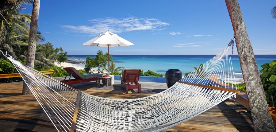 映画『青い珊瑚礁』の舞台としても知られ、フィジーの秘境とも称されるヤサワ諸島。その最北端に60エーカーもの広大な敷地を有する最高級リゾートである。客室は全てスイート形式のブレタイプ。純白のビーチに面して、シンプルモダンでシックな内装も美しい18棟のフィジー伝統建築のブレが点在する。レストラン、スパなど施設の充実もさることながら、卓越したホスピタリティや、バラエティに富んだ食事のクオリティの高さもフィジーでも指折りのもの。ヤサワに滞在する醍醐味は、離島ならではの大自然を満喫できること。鬱蒼と茂る熱帯雨林、水の青さ、透明度が格別の美しさの最高の海、手つかずの珊瑚礁が広がる海中世界・・。島内には11箇所のプライベートピーチがあり、2人だけでビーチを独占できる贅沢なプライベートピクニックもお楽しみいただけます。のんびりと過ごしながら、あるいはリゾート主催の様々なネイチャーアクティビティに参加しながら、大自然の鼓動を感じる幸せに包まれてみたい安らぎの空間です。