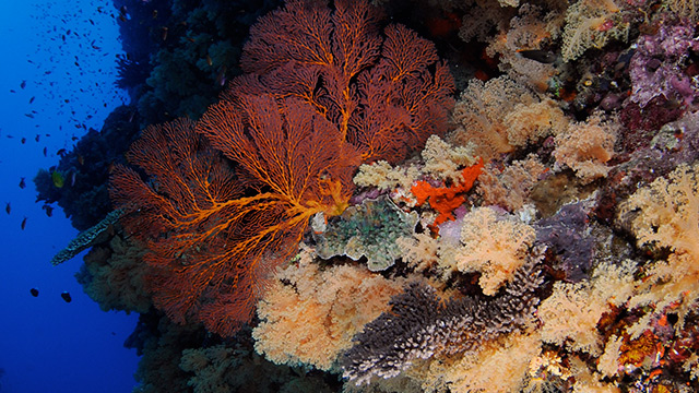 リーフトップを覆う、ハードコーラルとソフトコーラルの競演