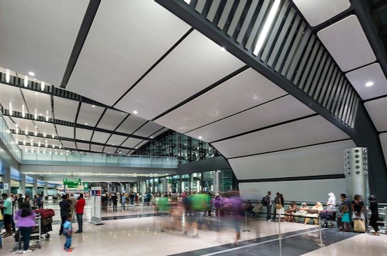 空港内の案内板で搭乗する航空会社と便名をご確認の上、カウンター内の係員へ航空券とパスポートを提示し、搭乗券(ボーディングパス)をお受け取り下さい。