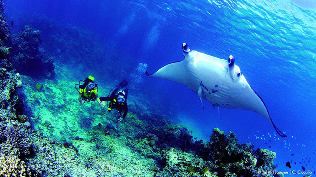 魚影の濃いパスでは、マンタに遭遇することも多い