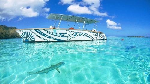 モーレア島の美しいラグーンで、サメとエイの餌付けとモツ・ピクニックがお楽しみいただける、海が好きな方におすすめの日帰りツアーです。