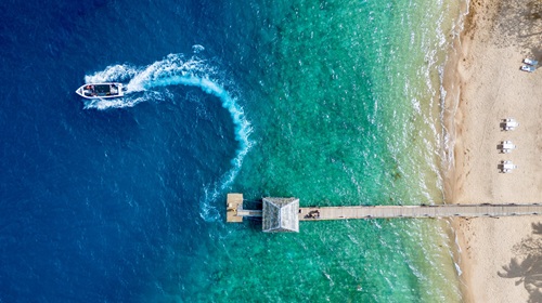 島々を巡りながら美しい景色を楽しみ、途中で他のリゾートに立ち寄って乗客の送迎を行った後、フィジー屈指の高級リゾートに到着します。上陸後は、マロロ・アイランド・リゾートの充実した施設を自由に満喫してください。